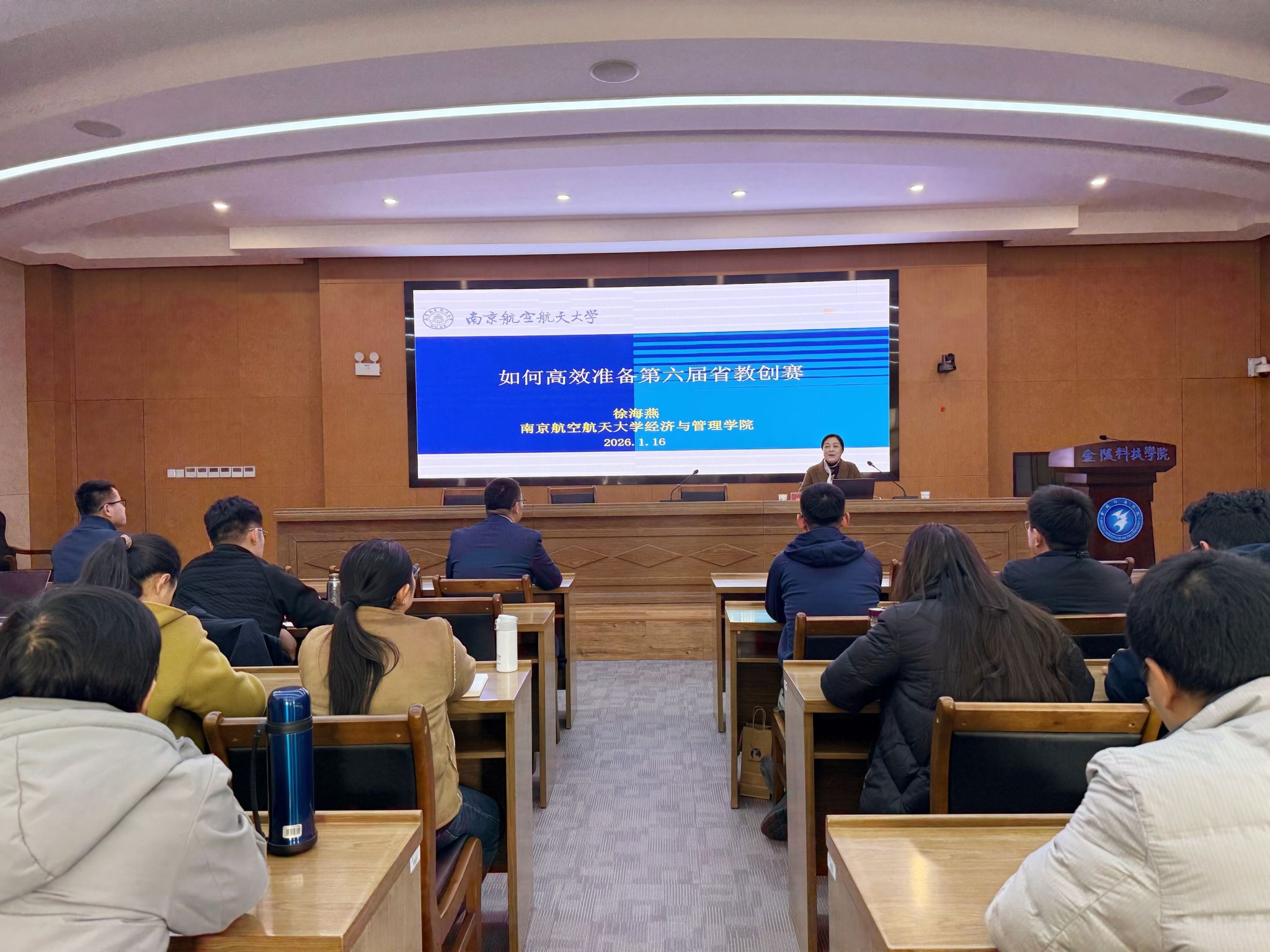 为进一步落实审核评估整改要求,提升我校教师教学能力,积极备战第六届江苏省教师教学创新大赛,1月16日下午,教学质量评估中心邀请了全国高校教师教学创新大赛一等奖获得者、南京航空航天大学徐海燕教授来校开展专题辅导。代表学校参加第六届省教创赛的教师及团队成员,中青年教师代表,新引进教师代表,人力资源处、评估中心等部门负责人及相关工作人员参加辅导会。会议由评估中心主任吴学松主持。